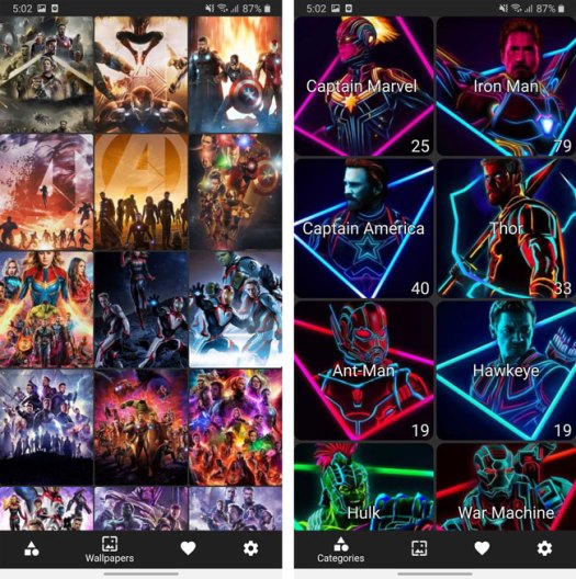 Contrasted with different applications, this application has a decent assortment covering both Marvel and DC. It likewise has a segment that shows all the superheroes. You can tap on the one you like and discover his/her wallpapers.