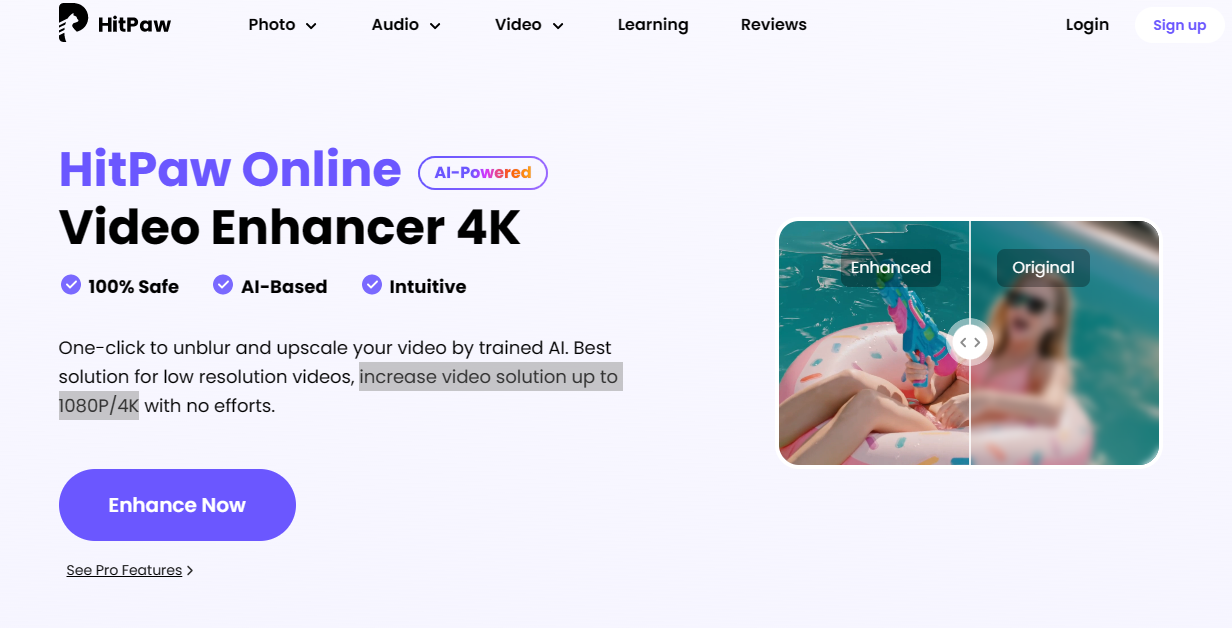 - Most advanced features unlock with the pro version of HitPaw Online Video Enhancer