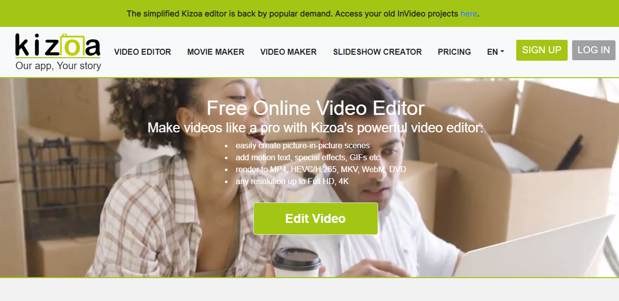 Kizoa is an online video editing and slideshow-making tool that offers various features to enhance video quality. It has a user-friendly interface that allows users to edit videos and add visual effects easily.