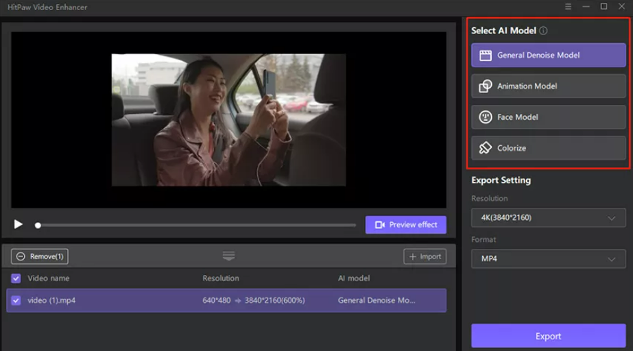 HitPaw Online Video Enhancer is an online tool that allows users to enhance the video quality by increasing the resolution up to 1080P/4K using advanced AI technology. It offers four different AI models to choose from, including the General Denoise Model, Animation Model, Face Model, and Colorize Model. HitPaw ensures 100% safe and private use, making it a reliable option for enhancing your video quality.