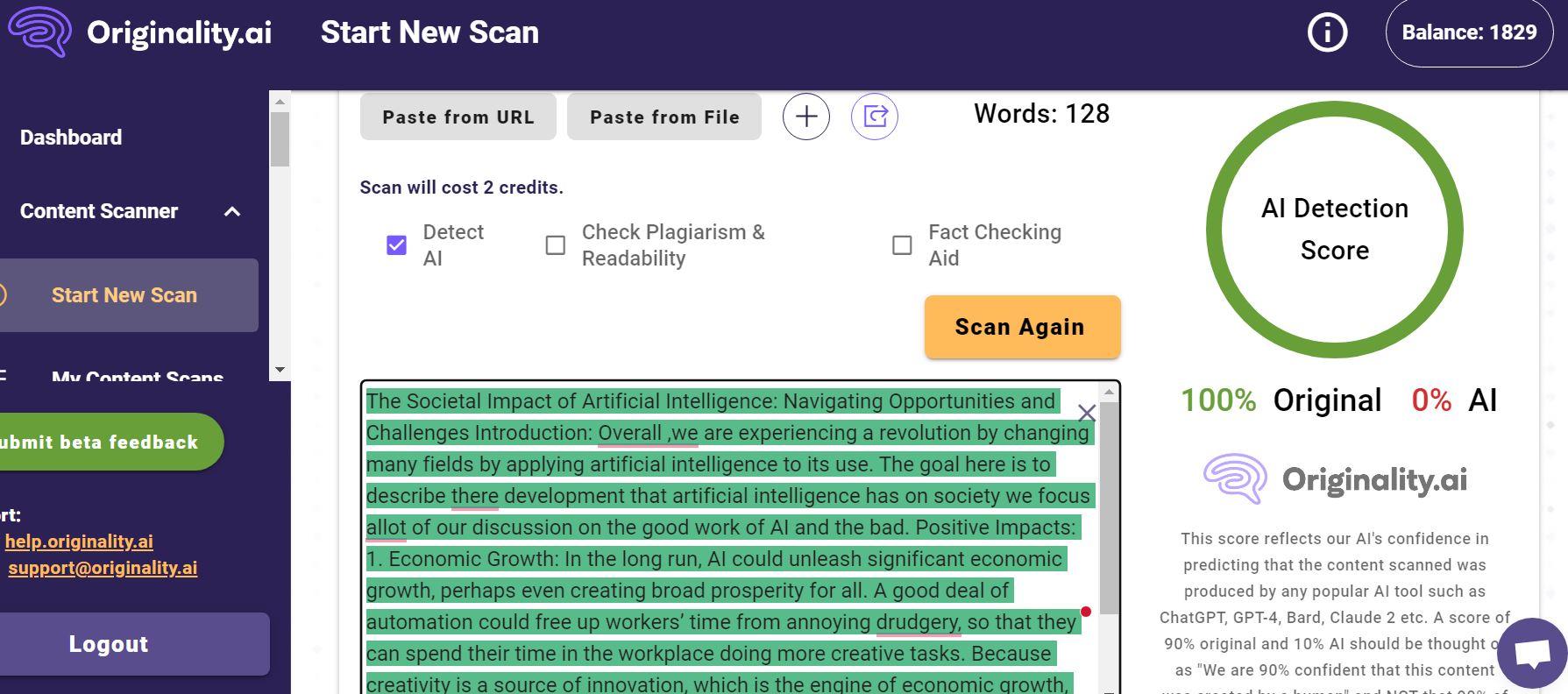 Using ChatGPT, our preferred AI tool, I first produced academic content. One of my assignment topics, which I’ve used as an example, is The Societal Impact of Artificial Intelligence.