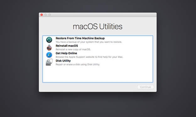 - In macOS Recovery mode, click Reinstall macOS from Utilities, then click Continue. Complete the on-screen instructions to install the macOS stored on the Mac recovery drive.