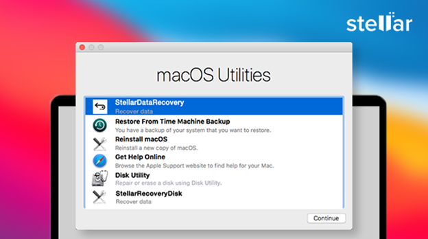 - Create a bootable recovery drive. Then, connect the drive to your non-booting Mac. In recovery mode, select StellarDataRecovery from Utilities, then click Continue