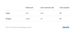 Advocates of the shotgun approach send lots of outreach emails to a broader list of “targets” and spend little or no time personalizing those emails.