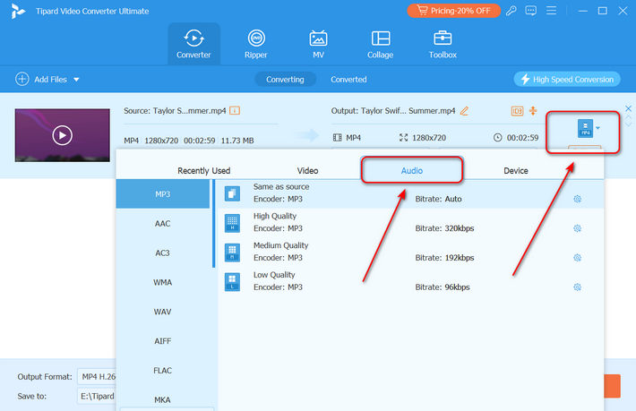 Don’t forget to download the audio file. Watch out for the audio format. A website only rips the audio from the video, so the original audio format could be AAC, which is incompatible with your player. Then, it would help if you converted it to other formats, such as MP3.