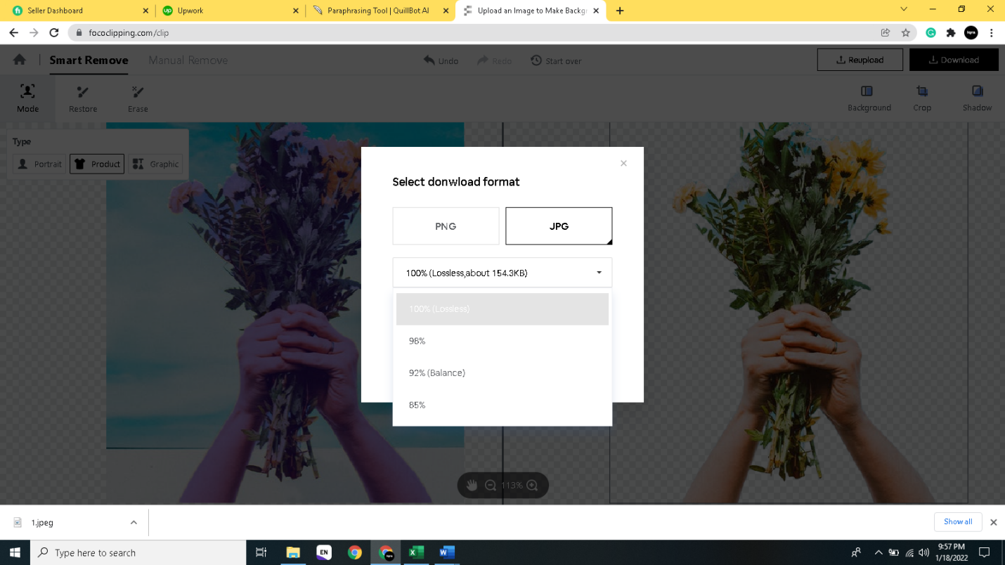 If you want to download the image, you can do so as a transparent PNG or JPG file. You can click the download button and get the image with erased background.