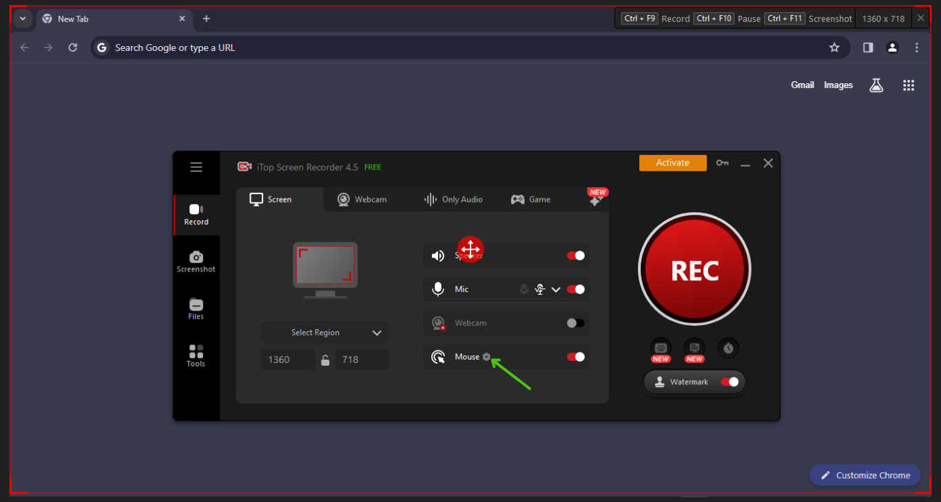 Make sure, you have turned on the “Speaker” only to record screen and audio at the same time. Also, the “Mouse” option is turned on.