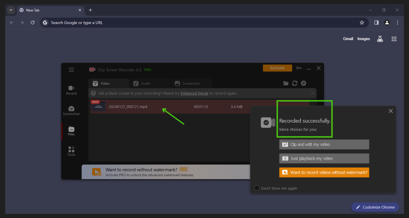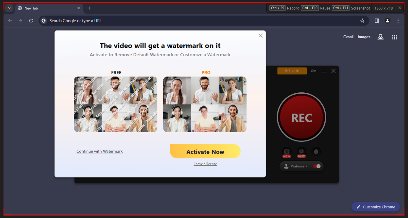 – Activate Now (you won’t see any watermark on your recorded video if you buy any PRO plan)