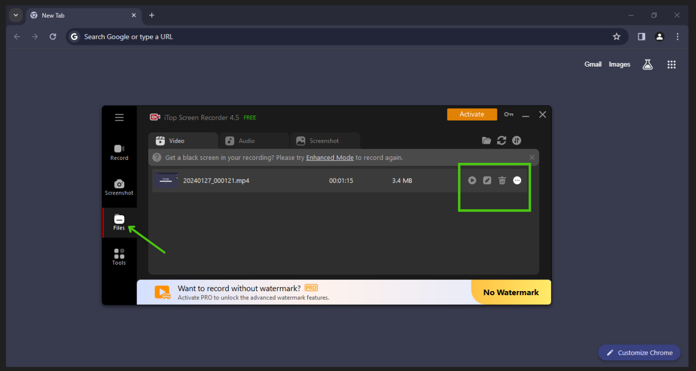 Finally, you can see your polished screen-recorded file in the Files section and also can preview, edit, delete or do more things whenever necessary according to your needs.